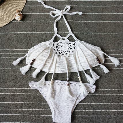 【送料無料】【即納】フリンジ ボヘミアン クロシェ ニット編み ビキニ ★3色