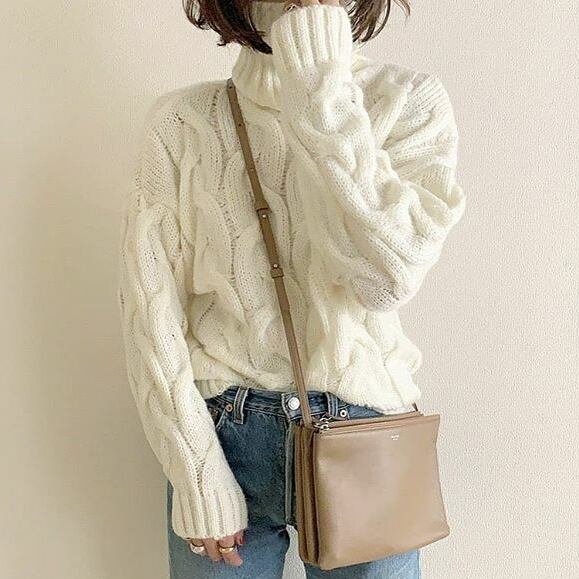 厚手 タートルネック ケーブルニット ベーシック★4色