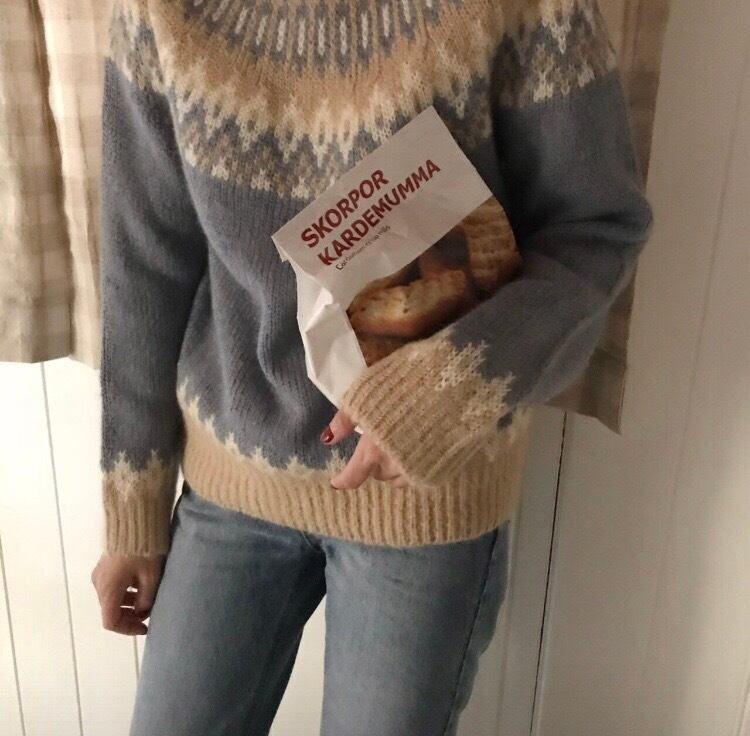 優しい色合いのジャガードニットです。