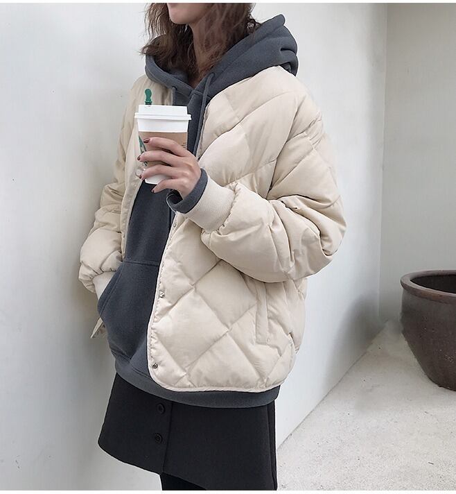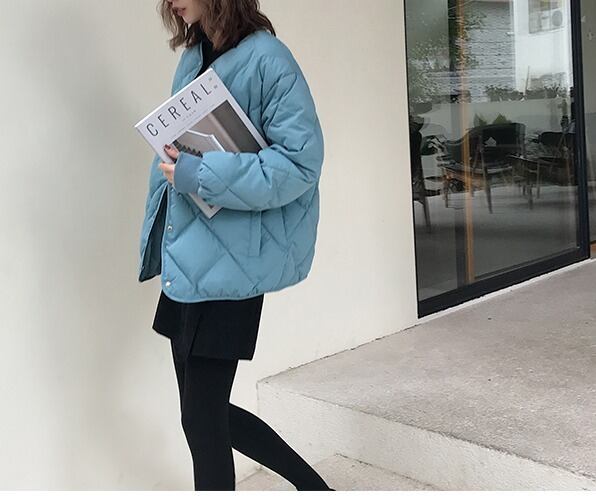 【送料無料】シンプル 中綿ダウンジャケット シンプル ノーカラー★2色