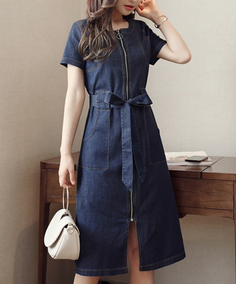 在庫処分! デニム ジッパー フレア ワンピース Mサイズ