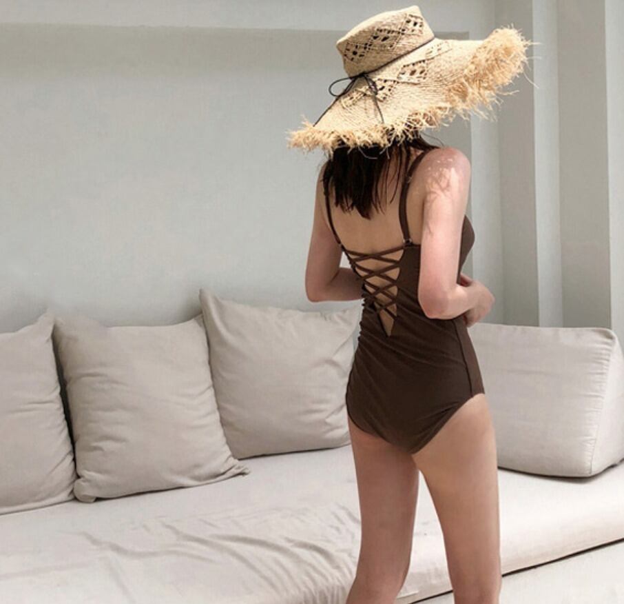 【送料無料】レースアップ バックシャン クラシック ワンピース水着