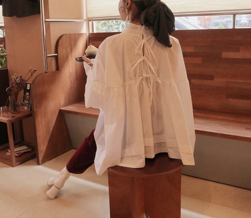 【送料無料】ゆったり フリル レースアップ ブラウス リバーシブル★2色