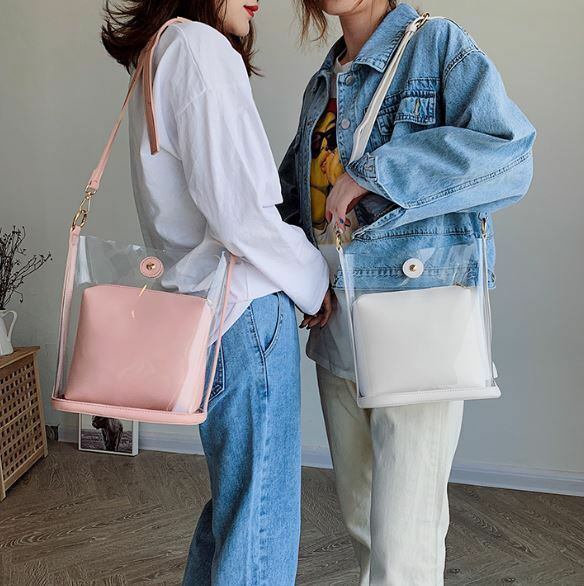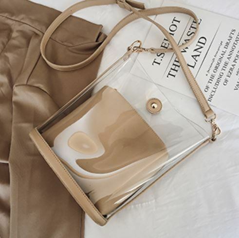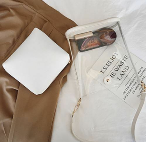 クリアのバッグとカラーのポーチを入れての2wayでお使いいただけます。