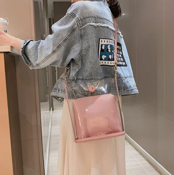 2way ショルダーバッグ ビニール クリア ポーチ付★4カラー