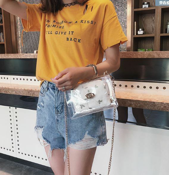 【送料無料】可愛い フラワー 2way クリアゼリーバッグ チェーン★2色