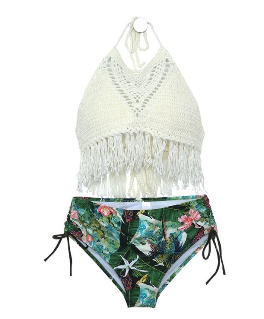 【送料無料】クロシェ 花柄 ホルターネックのビキニ 大人 トロピカル