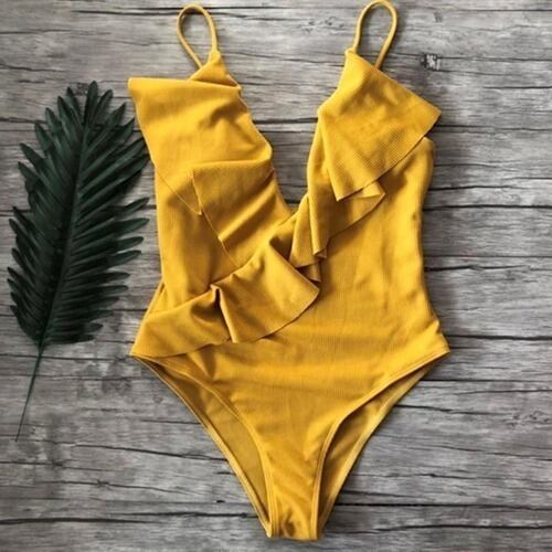 【送料無料】フリル 大人 Vネック ワンピース水着 セクシー★5色