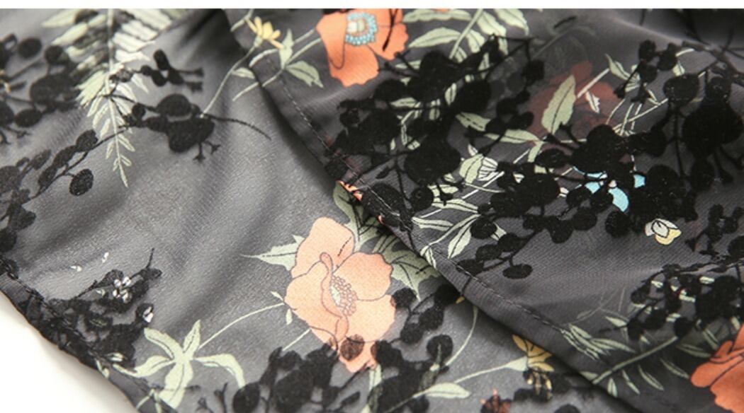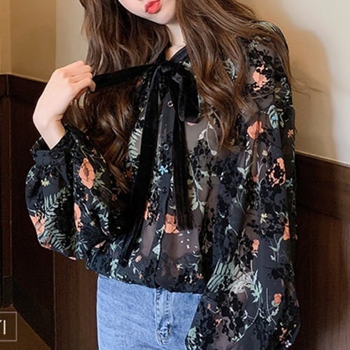 雰囲気のあるフラワー柄が目を引くシフォンブラウス です。
