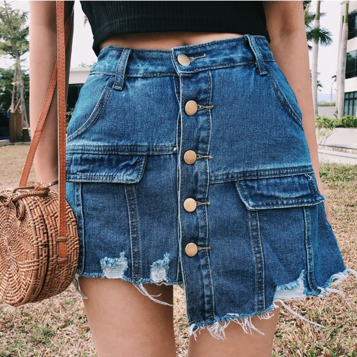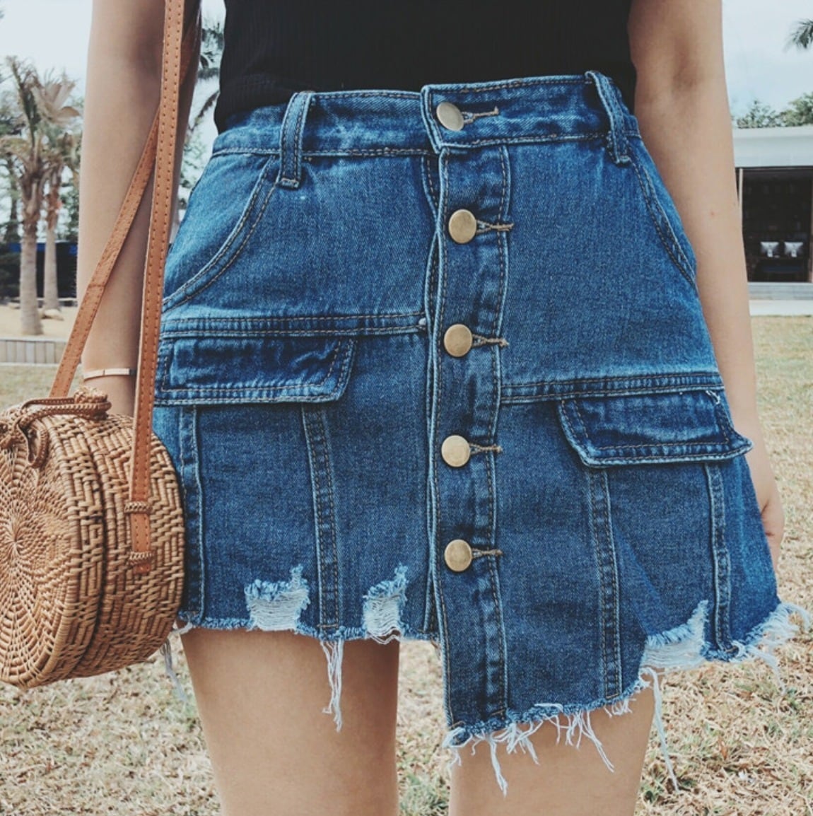 カットオフ デニムスカート ミニ丈 ダメージ感 カジュアル
