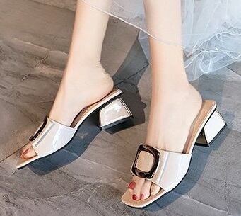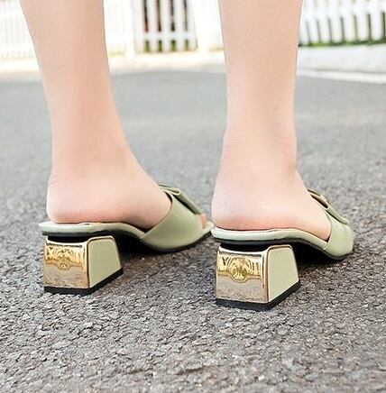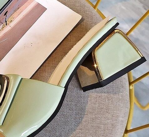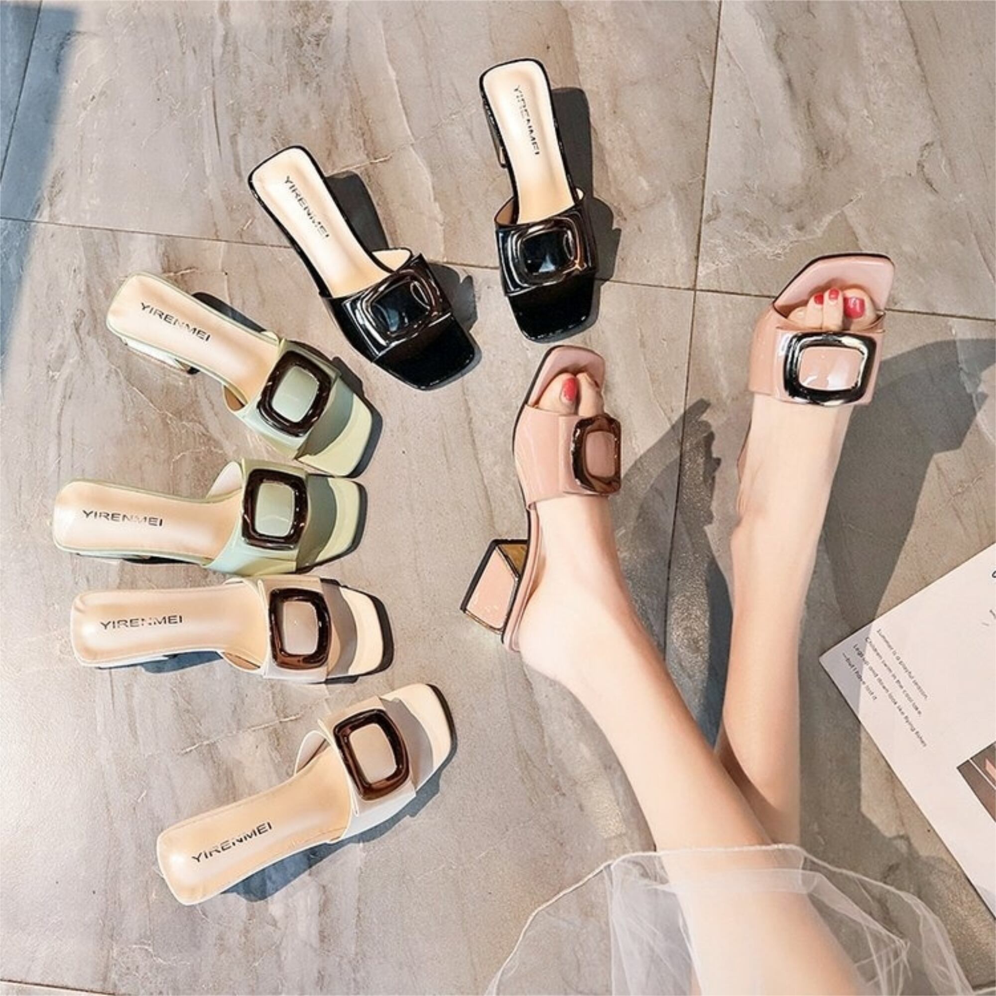 セール!! サンダル 太めヒール オープントゥ スリッポン★ブラック【即納】