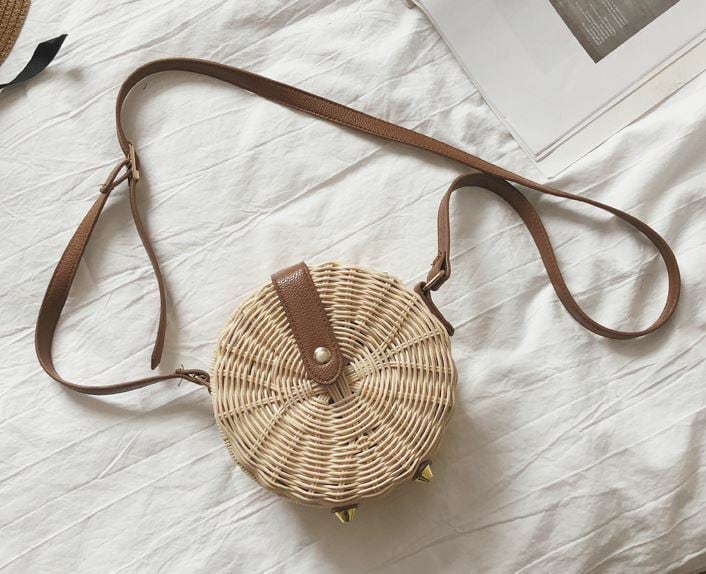 【送料無料】レトロ調 ナチュラル ストローショルダーバッグ ラウンド型