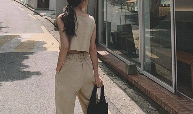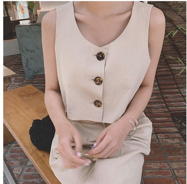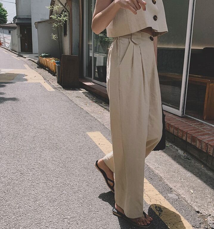 リネン素材でナチュラルな雰囲気のノースリーブのセットアップです。