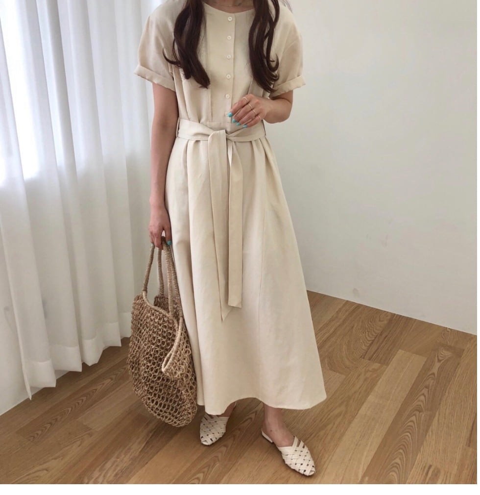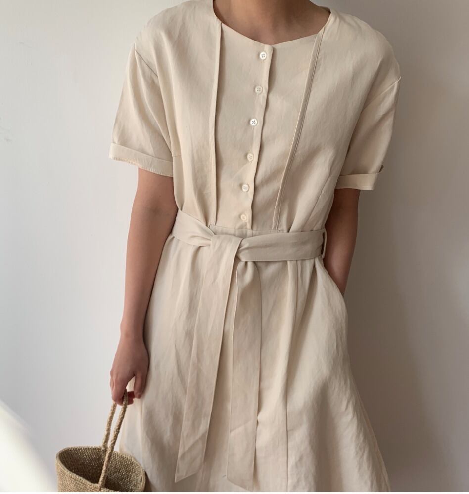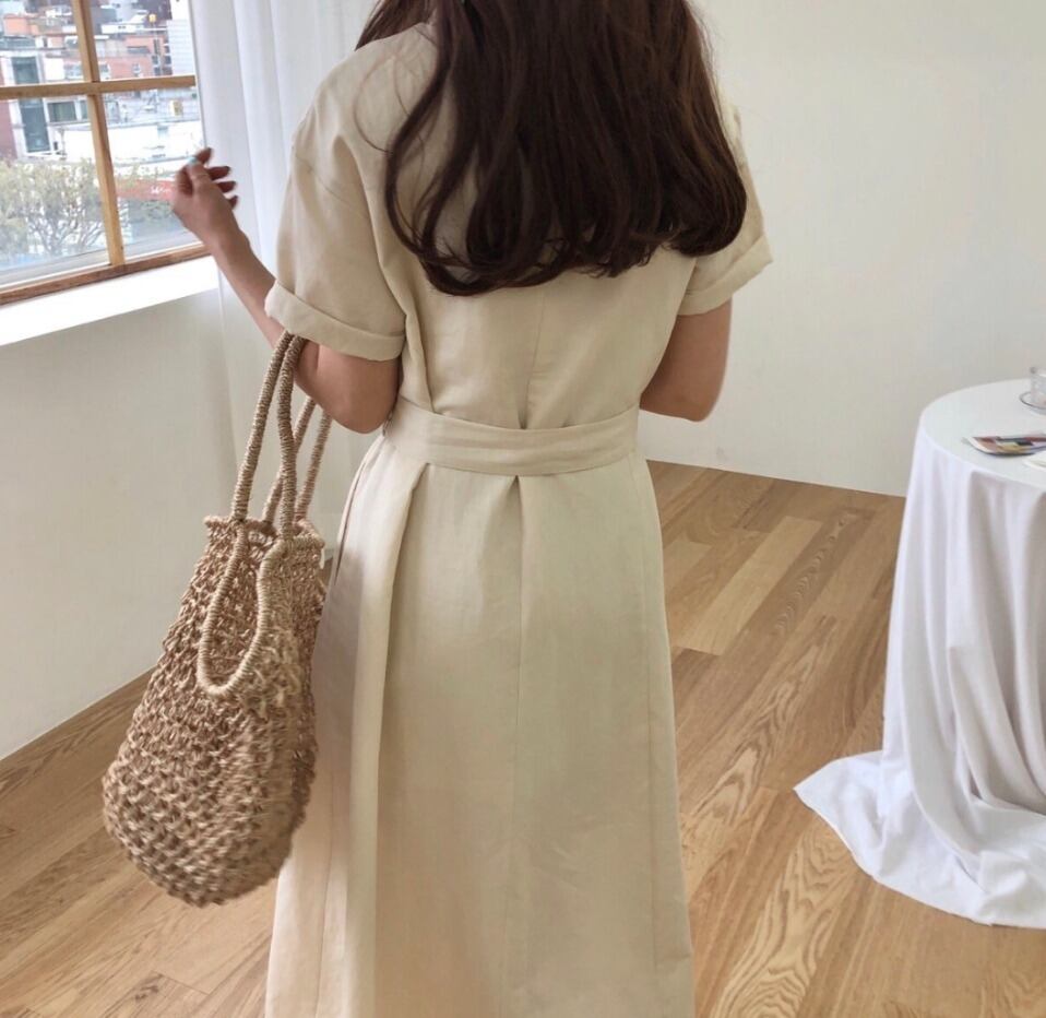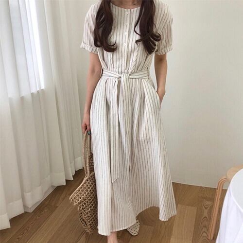 【送料無料】ナチュラル ストライプ ワンピース ベルト 涼しげ★2色