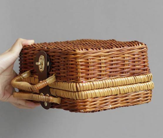 【送料無料】レトロ調 大人可愛い ストローバッグ 四角いフォルムがステキ