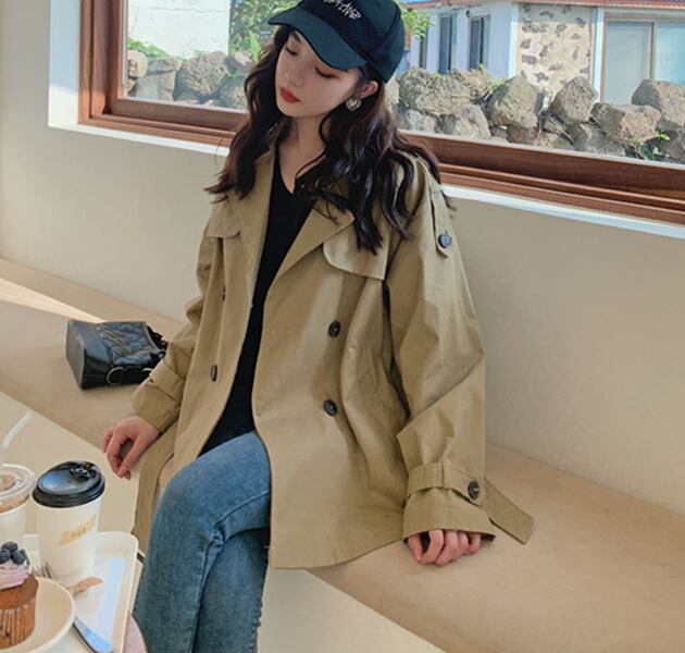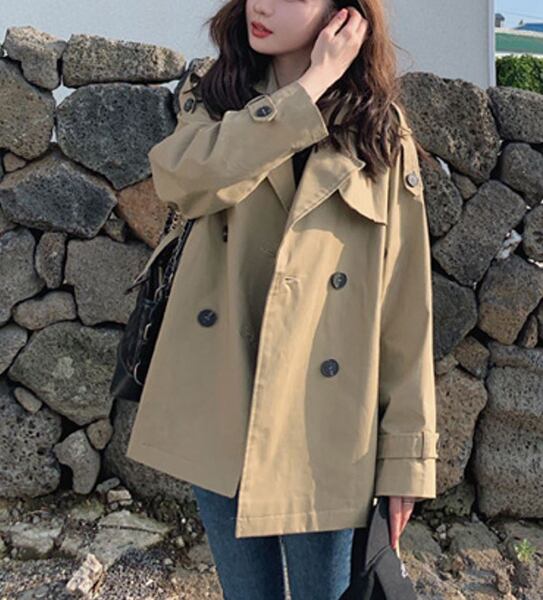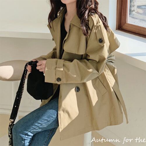 秋のマストアイテム、トレンチコート。ミディアム丈です。