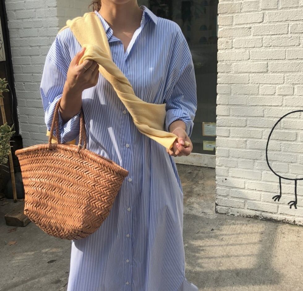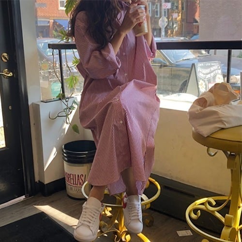 【送料無料】ストライプ リラックス シャツワンピース ゆったり★2色