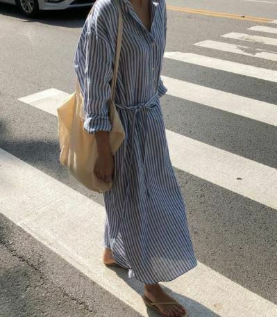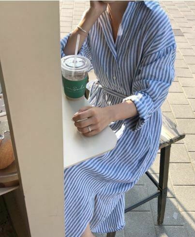 ポロのように襟元にボタンがあるタイプのシャツワンピース。