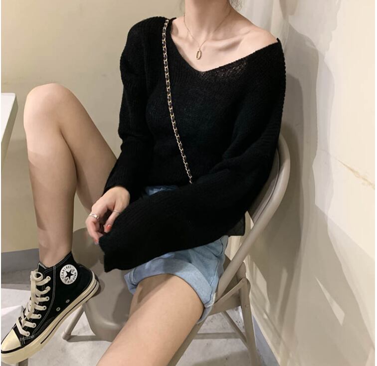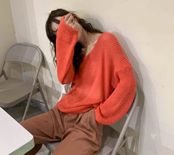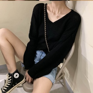 オーバーシルエット Vネック ベーシックニット★3色