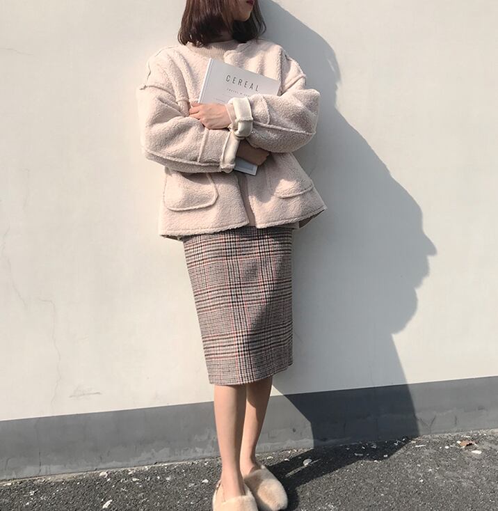 フェイクムートン ボア ゆったり ジャケット あったか★2色