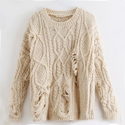 ケーブルニット ダメージ加工 ゆったり ざっくり★4色