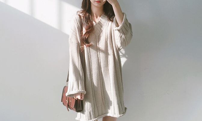 オーバシルエット スタイルカバー Vネック ロングニット★3色