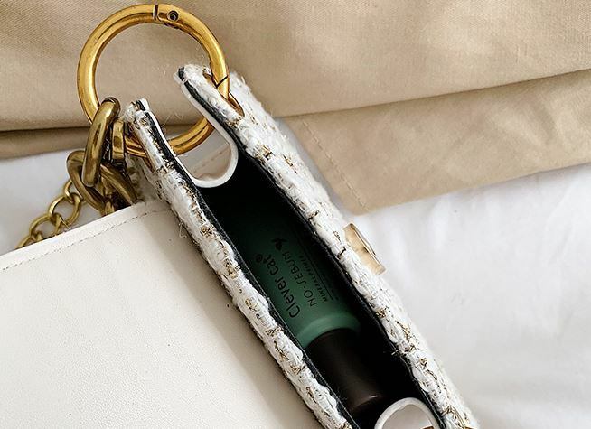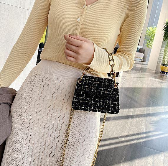 【送料無料】大人 個性的 チェーンショルダー ゴールド ツイード柄★3色