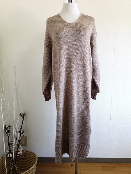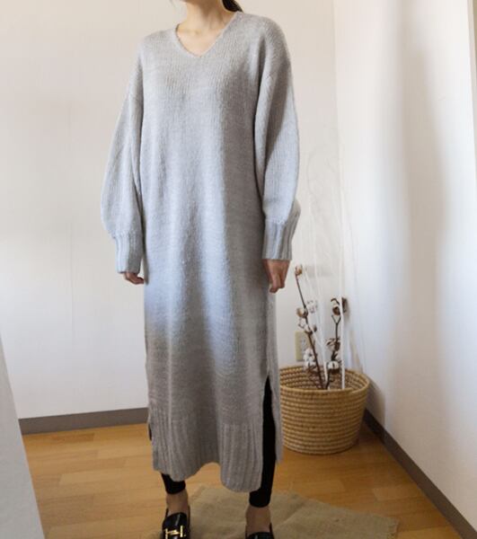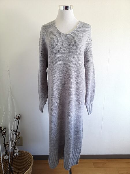 SALE!! Vネック 袖ゆったり ニットロングワンピース★2色