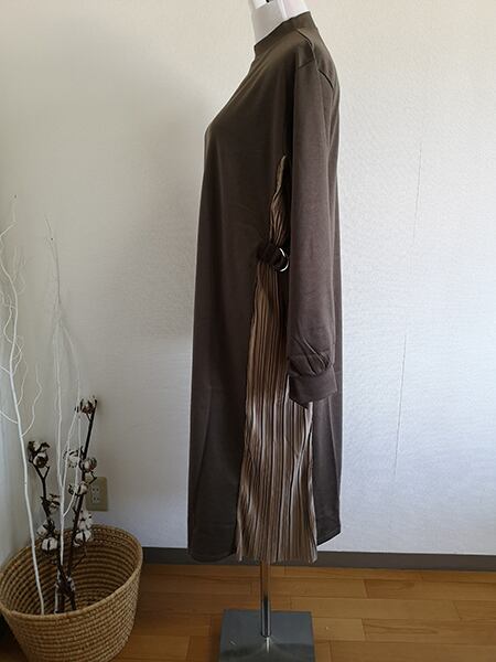 SALE!! サイドプリーツワンピース ハイネック 2色