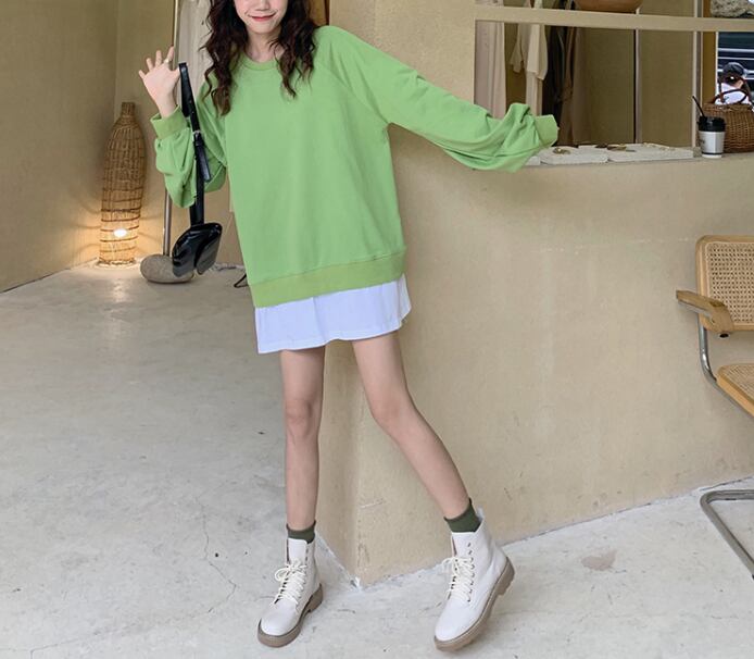 重ね着風 ボリューム袖 カジュアルスウェット★4色
