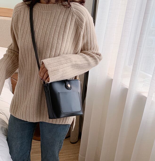ショルダーバッグ ボタン シンプル ポケット★4色