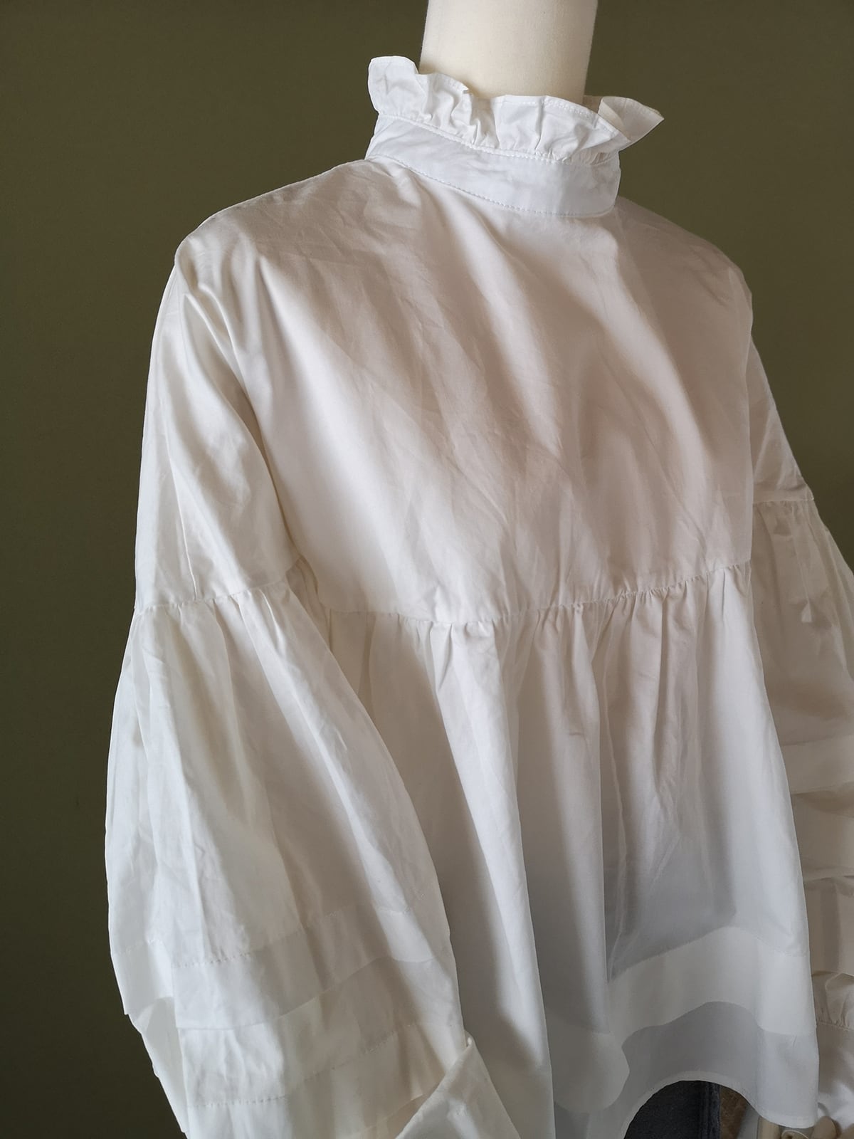 前後どちらも前に着用頂ける2wayのシャツブラウス。