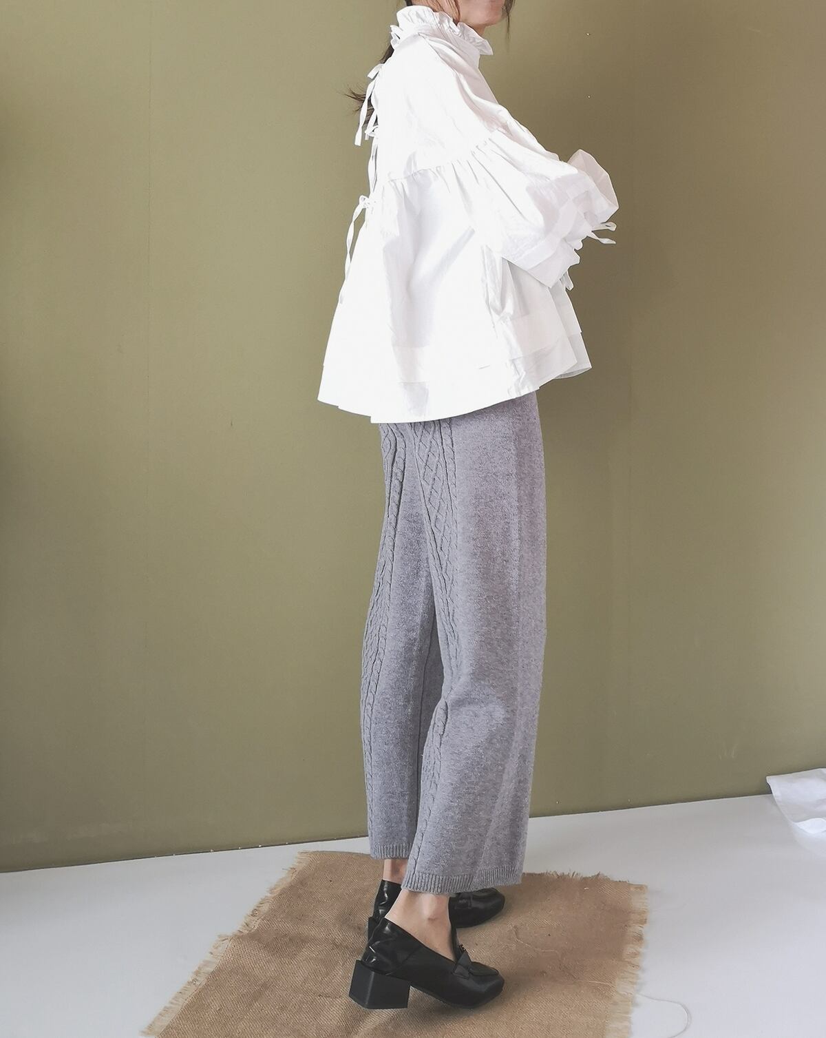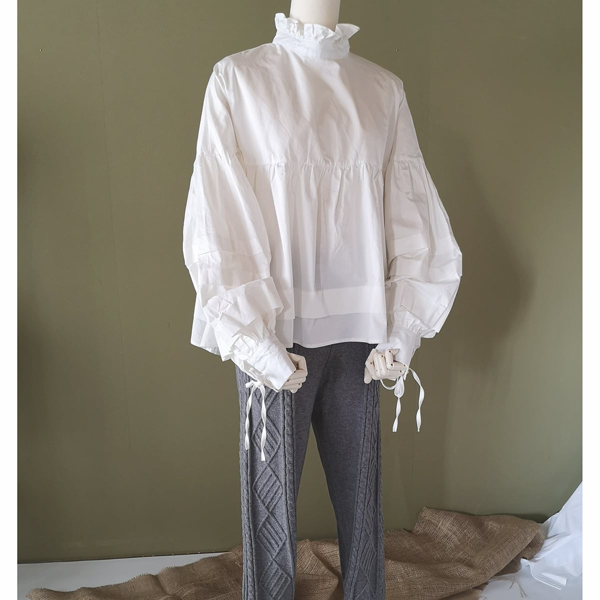 前後2way シャツ ブラウス 首元フリル バックリボン