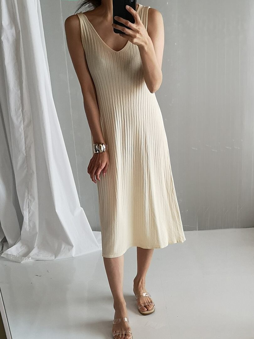 デイリー リブニット ノースリーブワンピース★2色