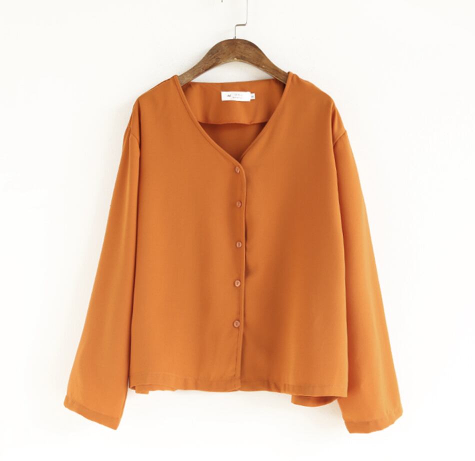 シンプル Vネック ブラウス オーバーシルエット 厚手シフォン★3色