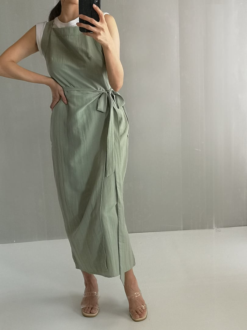 ノースリーブ タイト ロングワンピース ハイウエスト★3色