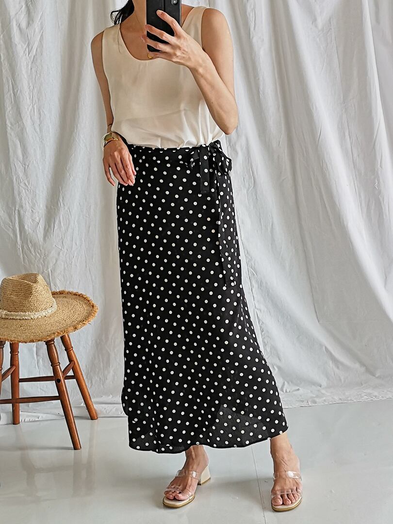 ドット柄 モノトーン 大人カジュアル ラップ フレアスカート