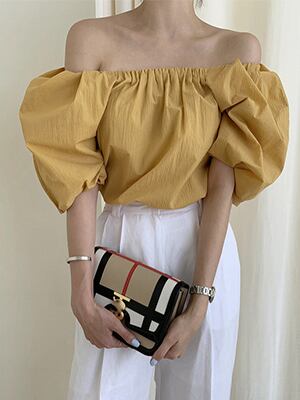 ボリューム感のあるパフスリーブがかわいいトップスです。