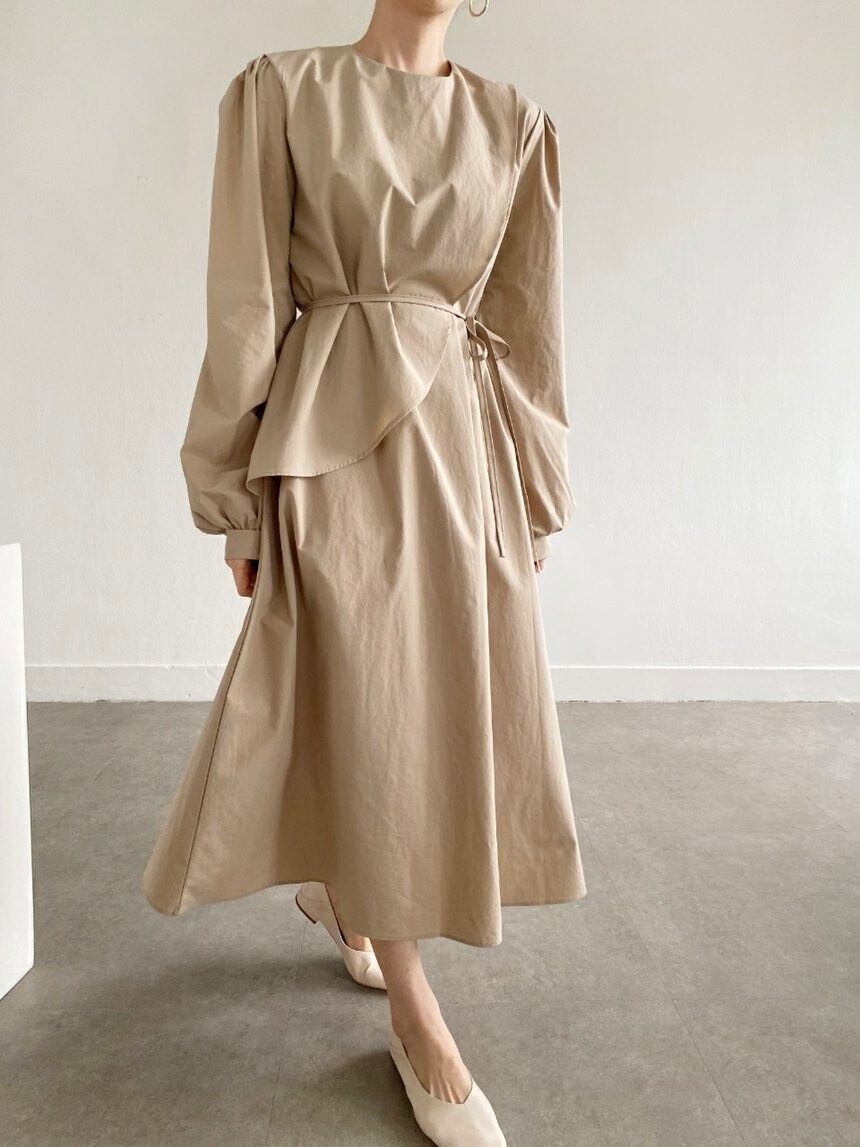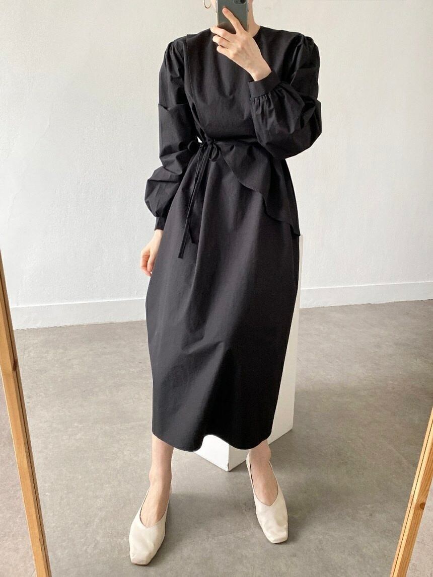 無地 ラウンドネック エレガントワンピース 2色