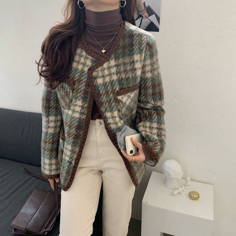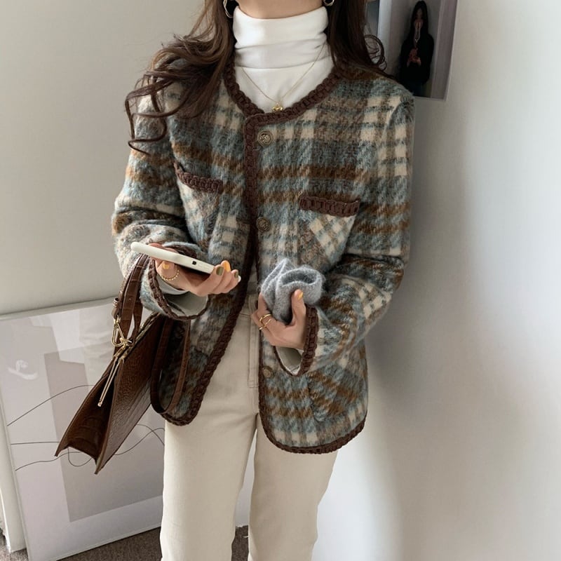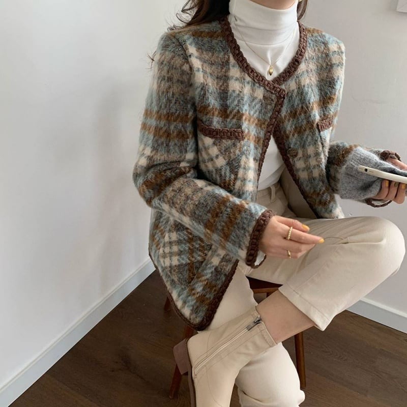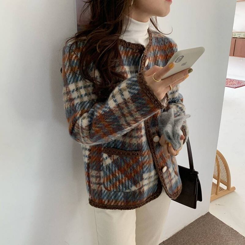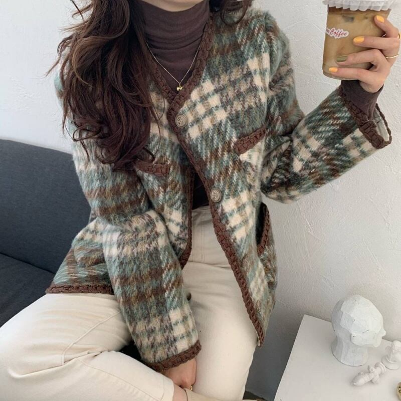 チェック柄 ウエスタン風 カーディガンジャケット 3色